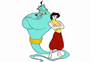 Prinzessin Jasmine, der Affe Abu, Flaschengeist,