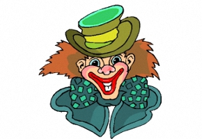 Luftballon, Kuchen, Instrumente, Brille und Clowns. |