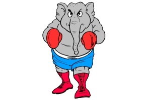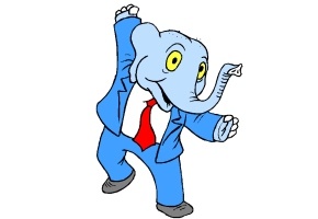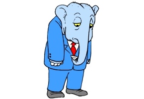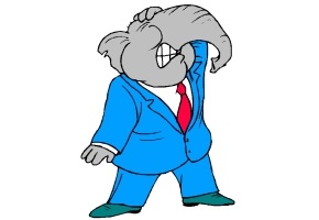 Motiv: Elefant, Krawatte, Anzug, Hose, Schuhe und