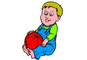 Motiv: Junge, Mädchen, Kiste, Geschenk, Ball,