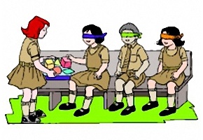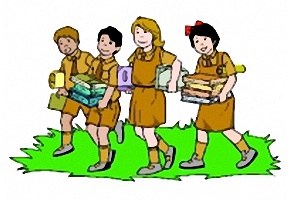 Motiv: Schule, Tische, Mädchen, Jungen, Bücher,
