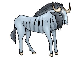 Schnabeltier, Kalb, Antilope, Gazelle und Zebra. |