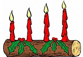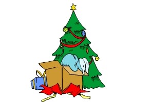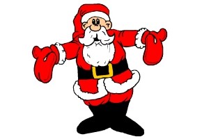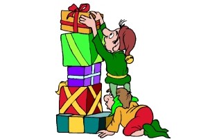 Motiv: Weihnachtsmann, Weihnachtsbaum und Elfen mit