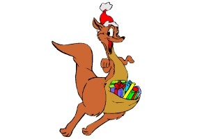 Motiv: Hase, Känguru, Eichhörnchen und Pinguin. |