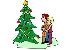 Motiv: Junge, Mädchen, Eltern, Weihnachtkranz und