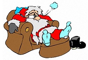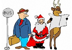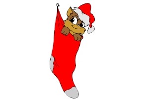 Motiv: Weihnachtsmann, Rentier und Katze. |