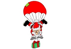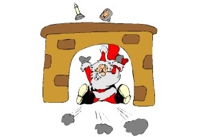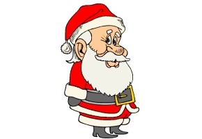 Motiv: Weihnachtsmann und Weihnachtsschmuck. |