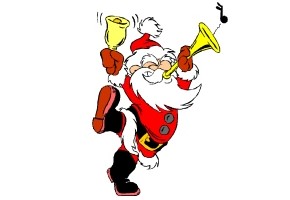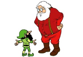 Motiv: Weihnachtsmann, Elfe und Rentier. |