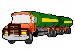 Motiv: Lkw, Radlader, Tankwagen und Müllwagen. |