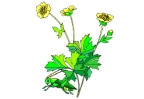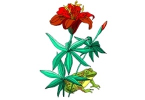 Blumen, Rosen, Frosch, Grille und gelbe Blumen. |