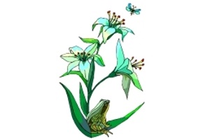 Schmetterling und lila Blumen, Herz Blume, Frosch