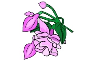 Blumen, Blätter, gelbe Blumen und rosa Blumen. |