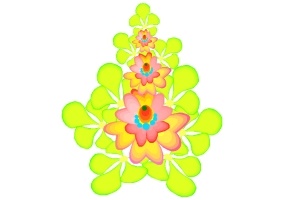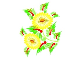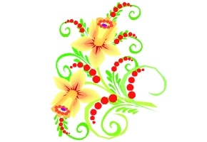 Blumen, Blumen Ornament, orange Blumen und rote Beeren. |