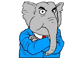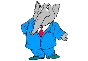 Motiv: Elefant, Krawatte, Anzug, Hose, Schuhe,