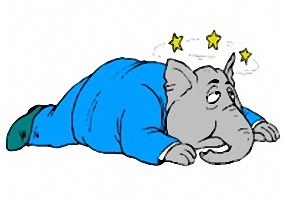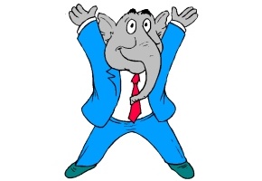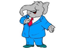 Motiv: Elefant, Anzug, Krawatte, Sterne und Tränen.