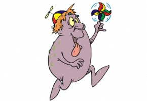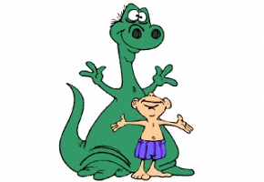 Motiv: Junge, Troll, Dinosaurier, Windrad, Mütze und