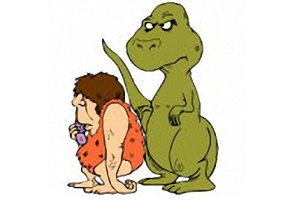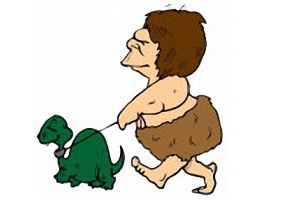 Motiv: Mensch, Dinosaurier, Höhlenmensch, Leine,