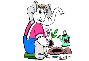 Skier, Mütze, Hosenträger, Erde, Gieskanne und