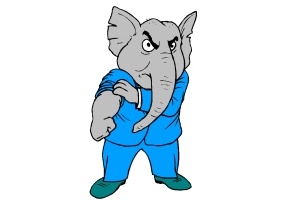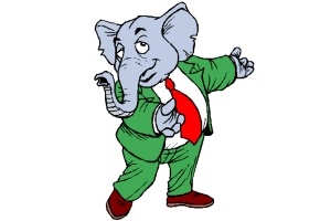 Motiv: Elefant, Anzug, Krawatte, Schuhe, Ärmel,