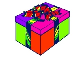 Motiv: bunte Geschenke, bunte Schleifen, Muster und