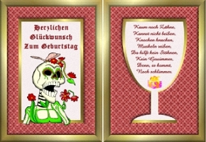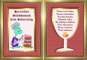 Grußkarten kostenlos ausdrucken & Lustige Geburtstagskarten mit Text gratis Online Downloaden. Die gratis Geburtstagssprüche, Geburtstagsgrüße, Glückwünsche, Geburtstagswünsche, Glückwunschkarten, Geburtstagskarten oder Kindergeburtstagskarten PDF Dateien zum Ausdrucken, finden Sie unter dem dazu gehörigen, kleinen Bild zur Glückwunschkarte. Sie finden hier weiter, Schöne, Coole, Witzige, Heitere und kostenlose SMS Sprüche zum Geburtstag, Gedichte, Verse, Reime, Weisheiten und Zitate. Malvorlagen & Ausmalbilder. Erst wenn Sie eine Glückwunschkarte, Grußkarte oder Geburtstagskarte auf Fotopapier ausgedruckt haben, können Sie sehen, wie gut die Qualität dieser Geburtstagskarten wirklich ist. Gratulation und Glückwunsch zum Geburtstag Karten für Kinder, Männer, Frauen, Bruder, Schwester, Tochter, Sohn, Vater, Mutter, Chef, Freund, Freundin, Bekannte, Neffe, Nichte, Partner, Nachbarn, Verwandte, Tante, Onkel, Opa, Oma, Enkel, Mädchen, Jungen, Teenager, Arbeit, Firma, Kollegen, Arbeitskollegen, Clubs, Vereine, Jugendliche, Erwachsene, Senioren mit 3D Bilderrahmen. Geburtstagskarten: Motiv Geburtstagsgeschenk, Tisch, Rechner, Mülleimer, Eimer, Stuhl, Schreibtisch, Schriebmaschine, Papier, Brille, Koffer, Aktenkoffer, Kleid, Blumen, Hut, Glas, Sekt, Champagner, Cappie, Tennisschläger, Schürze, Amor, Zigarre, Pfeil, Bogen, Alien, Kochmütze, Backen, Kuchen, Torte, Geburtstagskuchen, Geburtstagstorte, Hexe, Kessel, Feuer, Skelett, Dinosaurier, Drache, Lampe, Weinen, Ei, Herzen, Liebe, Esel, Pferd, Flügel, Blumenstrauß, Hase, Kaninchen, Keule, Schleuder, Elefant, Gesicht, Gewehr, Jogginganzug, Pfeife, Lockenwickler, Frosch, Eidechse, Kaktus, Gitarre, Sombrero, Boss, Halskette und Lippen.