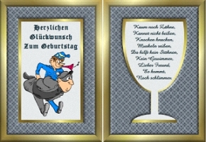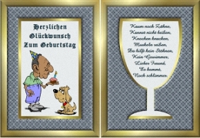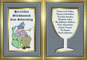 Grußkarten kostenlos ausdrucken & Lustige Geburtstagskarten mit Text gratis Online Downloaden. Die gratis Geburtstagssprüche, Geburtstagsgrüße, Glückwünsche, Geburtstagswünsche, Glückwunschkarten, Geburtstagskarten oder Kindergeburtstagskarten PDF Dateien zum Ausdrucken, finden Sie unter dem dazu gehörigen, kleinen Bild zur Glückwunschkarte. Sie finden hier weiter, Schöne, Coole, Witzige, Heitere und kostenlose SMS Sprüche zum Geburtstag, Gedichte, Verse, Reime, Weisheiten und Zitate. Malvorlagen & Ausmalbilder. Erst wenn Sie eine Glückwunschkarte, Grußkarte oder Geburtstagskarte auf Fotopapier ausgedruckt haben, können Sie sehen, wie gut die Qualität dieser Geburtstagskarten wirklich ist. Gratulation und Glückwunsch zum Geburtstag Karten für Kinder, Männer, Frauen, Bruder, Schwester, Tochter, Sohn, Vater, Mutter, Chef, Freund, Freundin, Bekannte, Neffe, Nichte, Partner, Nachbarn, Verwandte, Tante, Onkel, Opa, Oma, Enkel, Mädchen, Jungen, Teenager, Arbeit, Firma, Kollegen, Arbeitskollegen, Clubs, Vereine, Jugendliche, Erwachsene, Senioren mit 3D Bilderrahmen. Geburtstagskarten: Motiv Geburtstagsgeschenk, Luftballon, Tisch, Kuchen, Torte, Kerzen, Feuer, Rauch, Geburtstagskuchen, Geburtstagstorte, Partyhut, 40, Gehhilfe, Anzug, Krawatte, Mütze, Flasche, Strohhalm, Party, Feier, Geschenk, Sessel, Schlafen, Tanzen, Schleife, Konfetti, Lachen, Verbrecher, Polizei, Uniform, Hund, Skelett, Spinnenweben, Apfel, Tablett, Pilger, Thanks Giving, Brille, Koch, Bäcker, Tischdecke, Clown, Traum, Pinsel, Farbe, Buchstaben und Plakat.