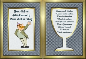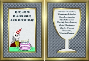 Grußkarten kostenlos ausdrucken & Lustige Geburtstagskarten mit Text gratis Online Downloaden. Die gratis Geburtstagssprüche, Geburtstagsgrüße, Glückwünsche, Geburtstagswünsche, Glückwunschkarten, Geburtstagskarten oder Kindergeburtstagskarten PDF Dateien zum Ausdrucken, finden Sie unter dem dazu gehörigen, kleinen Bild zur Glückwunschkarte. Sie finden hier weiter, Schöne, Coole, Witzige, Heitere und kostenlose SMS Sprüche zum Geburtstag, Gedichte, Verse, Reime, Weisheiten und Zitate. Malvorlagen & Ausmalbilder. Erst wenn Sie eine Glückwunschkarte, Grußkarte oder Geburtstagskarte auf Fotopapier ausgedruckt haben, können Sie sehen, wie gut die Qualität dieser Geburtstagskarten wirklich ist. Gratulation und Glückwunsch zum Geburtstag Karten für Kinder, Männer, Frauen, Bruder, Schwester, Tochter, Sohn, Vater, Mutter, Chef, Freund, Freundin, Bekannte, Neffe, Nichte, Partner, Nachbarn, Verwandte, Tante, Onkel, Opa, Oma, Enkel, Mädchen, Jungen, Teenager, Arbeit, Firma, Kollegen, Arbeitskollegen, Clubs, Vereine, Jugendliche, Erwachsene, Senioren mit 3D Bilderrahmen. Geburtstagskarten: Motiv Geburtstagsgeschenk, Luftballon, Tisch, Kuchen, Torte, Kerzen, Feuer, Rauch, Geburtstagskuchen, Geburtstagstorte, Partyhut, 40, Gehhilfe, Anzug, Krawatte, Mütze, Flasche, Strohhalm, Party, Feier, Geschenk, Sessel, Schlafen, Tanzen, Schleife, Konfetti, Lachen, Verbrecher, Polizei, Uniform, Hund, Skelett, Spinnenweben, Apfel, Tablett, Pilger, Thanks Giving, Brille, Koch, Bäcker, Tischdecke, Clown, Traum, Pinsel, Farbe, Buchstaben und Plakat.