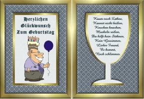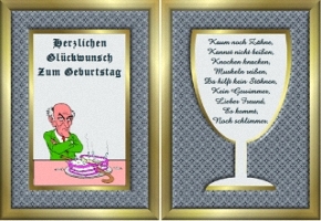 Grußkarten kostenlos ausdrucken & Lustige Geburtstagskarten mit Text gratis Online Downloaden. Die gratis Geburtstagssprüche, Geburtstagsgrüße, Glückwünsche, Geburtstagswünsche, Glückwunschkarten, Geburtstagskarten oder Kindergeburtstagskarten PDF Dateien zum Ausdrucken, finden Sie unter dem dazu gehörigen, kleinen Bild zur Glückwunschkarte. Sie finden hier weiter, Schöne, Coole, Witzige, Heitere und kostenlose SMS Sprüche zum Geburtstag, Gedichte, Verse, Reime, Weisheiten und Zitate. Malvorlagen & Ausmalbilder. Erst wenn Sie eine Glückwunschkarte, Grußkarte oder Geburtstagskarte auf Fotopapier ausgedruckt haben, können Sie sehen, wie gut die Qualität dieser Geburtstagskarten wirklich ist. Gratulation und Glückwunsch zum Geburtstag Karten für Kinder, Männer, Frauen, Bruder, Schwester, Tochter, Sohn, Vater, Mutter, Chef, Freund, Freundin, Bekannte, Neffe, Nichte, Partner, Nachbarn, Verwandte, Tante, Onkel, Opa, Oma, Enkel, Mädchen, Jungen, Teenager, Arbeit, Firma, Kollegen, Arbeitskollegen, Clubs, Vereine, Jugendliche, Erwachsene, Senioren mit 3D Bilderrahmen. Geburtstagskarten: Motiv Geburtstagsgeschenk, Luftballon, Tisch, Kuchen, Torte, Kerzen, Feuer, Rauch, Geburtstagskuchen, Geburtstagstorte, Partyhut, 40, Gehhilfe, Anzug, Krawatte, Mütze, Flasche, Strohhalm, Party, Feier, Geschenk, Sessel, Schlafen, Tanzen, Schleife, Konfetti, Lachen, Verbrecher, Polizei, Uniform, Hund, Skelett, Spinnenweben, Apfel, Tablett, Pilger, Thanks Giving, Brille, Koch, Bäcker, Tischdecke, Clown, Traum, Pinsel, Farbe, Buchstaben und Plakat.