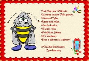 Grußkarten kostenlos ausdrucken & Lustige Geburtstagskarten mit Text gratis Online Downloaden. Die gratis Geburtstagssprüche, Geburtstagsgrüße, Glückwünsche, Geburtstagswünsche, Glückwunschkarten, Geburtstagskarten oder Kindergeburtstagskarten PDF Dateien zum Ausdrucken, finden Sie unter dem dazu gehörigen, kleinen Bild zur Glückwunschkarte. Sie finden hier weiter, Schöne, Coole, Witzige, Heitere und kostenlose SMS Sprüche zum Geburtstag, Gedichte, Verse, Reime, Weisheiten und Zitate. Malvorlagen & Ausmalbilder. Erst wenn Sie eine Glückwunschkarte, Grußkarte oder Geburtstagskarte auf Fotopapier ausgedruckt haben, können Sie sehen, wie gut die Qualität dieser Geburtstagskarten wirklich ist. Gratulation und Glückwunsch zum Geburtstag Karten für Kinder, Männer, Frauen, Bruder, Schwester, Tochter, Sohn, Vater, Mutter, Chef, Freund, Freundin, Bekannte, Neffe, Nichte, Partner, Nachbarn, Verwandte, Tante, Onkel, Opa, Oma, Enkel, Mädchen, Jungen, Teenager, Arbeit, Firma, Kollegen, Arbeitskollegen, Clubs, Vereine, Jugendliche, Erwachsene, Senioren mit 3D Bilderrahmen. Geburtstagskarten: Motiv Geburtstagsgeschenk, Biene, König, Königin, Zepter, Umhang, Krone, Schmetterling, Schuhe, Wespe, Raupe, Halskette, Hut, Flügel, Pilz, Märchen, Teufel, Hörner, Dämon, Stock, Trolle, Hexer, Skelett, Rosen, Blumen, Rasseln, Maske, Eingeborener,  Kobold, Hexe, Besen, Kuchen, Kleid, Schürze, Teller, Backen, Kochen, Brot, Regenbogen, Korb, Pferd, Esel, Herzen, Liebe, Drache, Ei, Dinosaurier, Kleeblatt, Schuhe, Hemd, Brille, Zähne, Fee, Alien, Ufo, Torte, Geburtstagskuchen, Feuerwehrmann, Geburtstagstorte, Monster, Trompete, bunte Kleidung, rote Nase, Clown, Zirkus, Tröte, Haare, Schminke, Helm, Feuer, Feuerwehr und Gehstock.