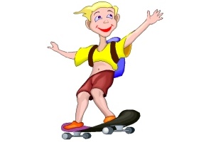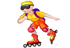 Rucksack, Sonnenbrille, Skateboard und Inliner.