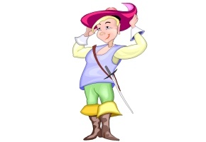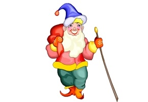Motiv: Junge, Elf, Sack, Mütze, Hut, Stock, Degen,