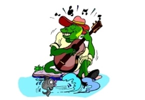Motiv: Wasser, Fisch, Gitarre, Hut, Musik,