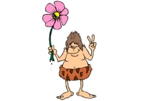 Höhlenmensch, Blume, Boot und Dinosaurier. |