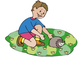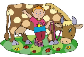 Motiv: Junge, Mädchen, Wiese, Kuh, Igel, Mann und