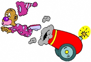 Luftballon, Kuchen, Instrumente, Brille und Clowns. |
