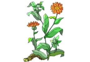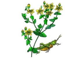 Blumen, Heuschrecke, Raupe, rosa Blume, gelbe Blume,
