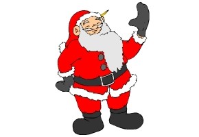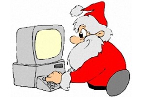 Motiv: Weihnachtsmann, Computer, Roboter und beim