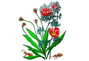 Blumen, Grille. Ameisen, lila Blumen, rote