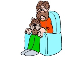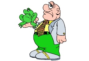 Motiv: Mann, Krawatte, Frosch, Sessel, Hund, Bart,