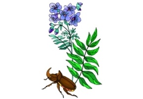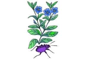 Blumen, Käfer, blaue Blumen, rosa Blumen, gelbe