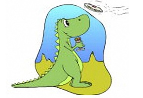 Motiv: Zunge, Dinosaurier, Ufo, Bildschirm und