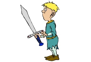 und Piraten, Schwert, Helm, Mann, Junge und Knappe. |