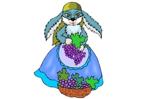 Handschuh, Ente, Kücken, Trauben und Kleid. |
