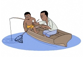 Motiv: Junge, Basteln, Angeln, Boot, Wasser,