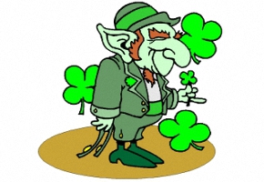 Motiv: Kleeblatt, Kobold, Hund, Lampe, Mann,