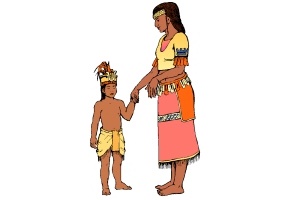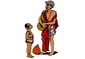 Mütze, Tuch, Vater und Mutter. |