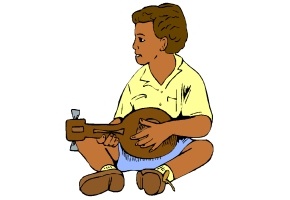 Motiv: Junge, Mädchen, Gitarre, Kleid, Tasche,