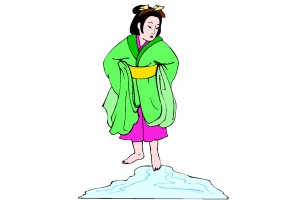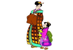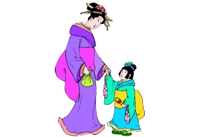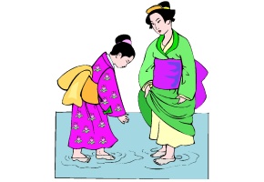 Motiv: Kimono, Wasser, Frau, Mutter, Kind und