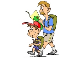 Karton, Geschenke, Puppe, Teddybär, Wandern, Vater