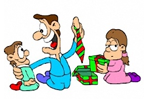 Motiv: Vater, Kinder, Mädchen, Junge, Geschenke,